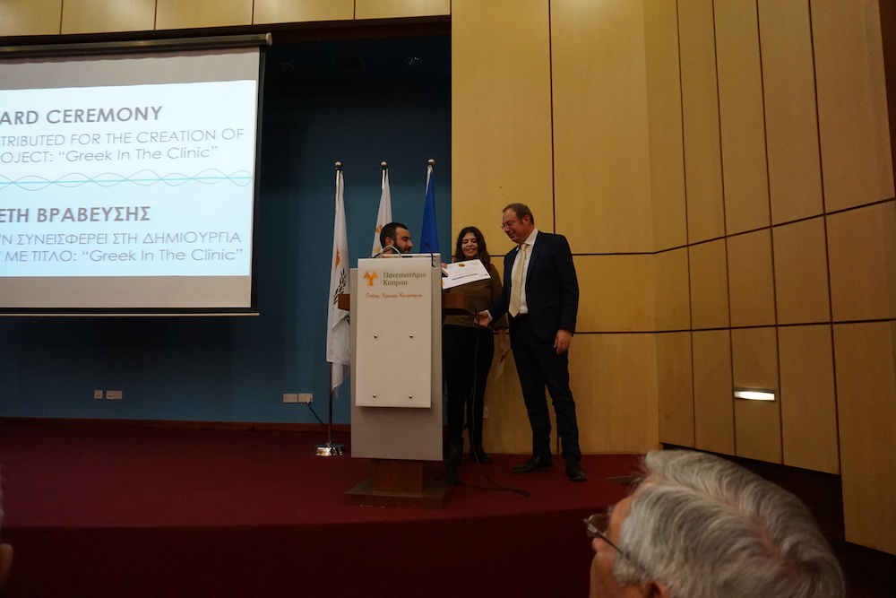 Dr. Pedonomou was honored with a Diploma by the Cyprus Medical Students’ Association for his continuous participation to the Medical School teaching program and for his contribution to the development of the medical booklet “Greek in the Clinic” to support the English speaking students at the time they are practicing their medical skills in the Cyprus hospitals.